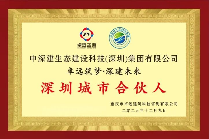2025年12月9日上午,重庆市卓远建筑科技咨询有限公司与中深建生态建设科技(深圳)集团有限公司“卓远筑梦 深建未来”城市合伙人签约仪式在深圳中深建生态科技集团的党建创想空间里举行。