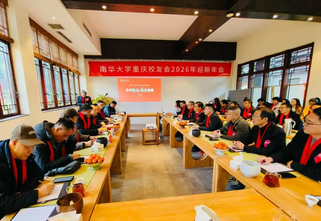山城叠翠,情谊炽热。2026年1月31日,南华大学重庆校友会以“南华致远,渝马奔腾”为主题的年会在渝圆满举行。南华大学校友总会会长唐振平、深圳校友会原常务副会长兼秘书长谢军、湖北校友会执行会长张海涛等应邀出席,与近百名在渝校友欢聚一堂,畅叙情谊,共谋发展。活动由校友邓红霞、邹小舟主持。